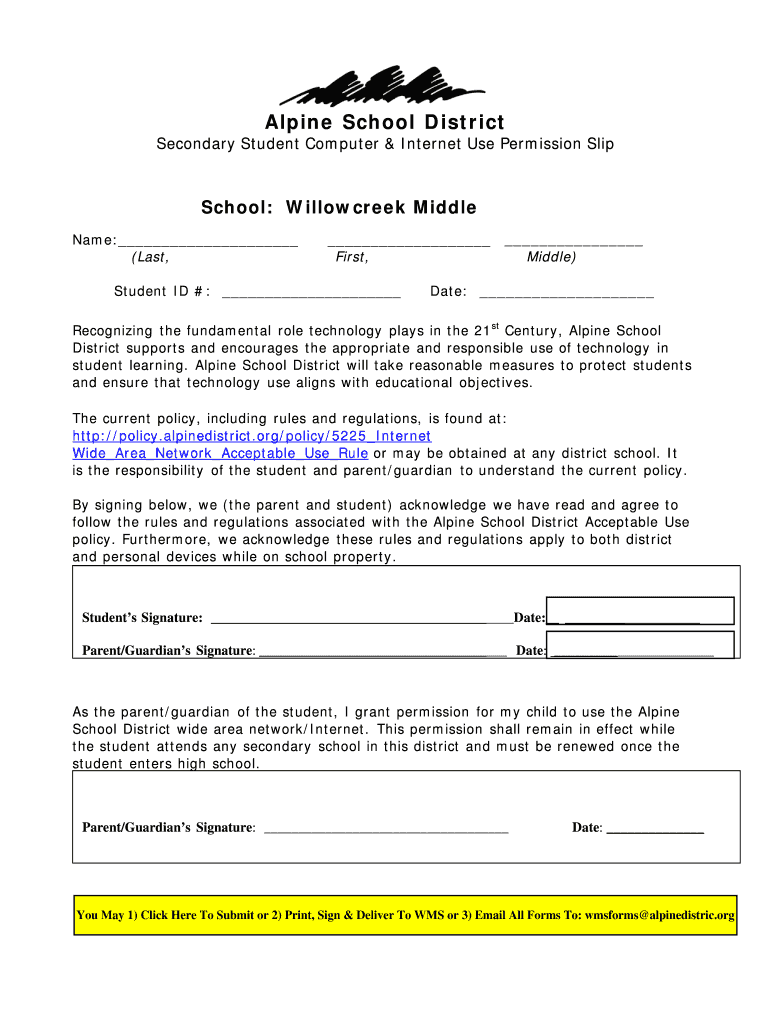 Get the free Alpine School District Student Computer & Internet Use Permission Slip