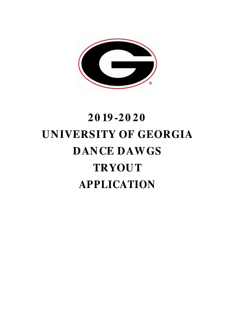 20192020 UNIVERSITY OF GEORGIA DANCE DAWGS TRYOUT APPLICATION20192020 UGA Dance Dawgs TRYOUT APPLICATION NAME (Last)(First)GENDER (Check one) Headdress(Middle) BIRTH DATEFemale(Street Address)(City,