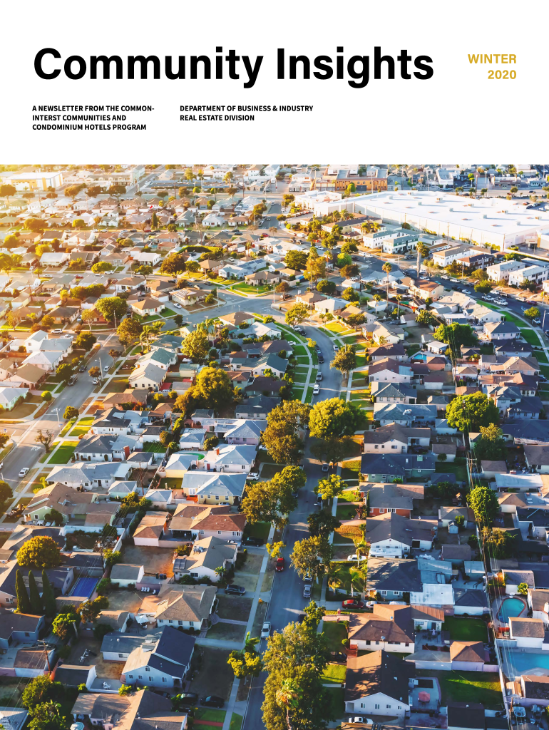 Community Insights A NEWSLETTER FROM THE COMMONINTERST COMMUNITIES AND CONDOMINIUM HOTELS PROGRAMDEPARTMENT OF BUSINESS & INDUSTRY REAL ESTATE DIVISIONWINTER 2020In this issue Ombudsman Huddle1Education