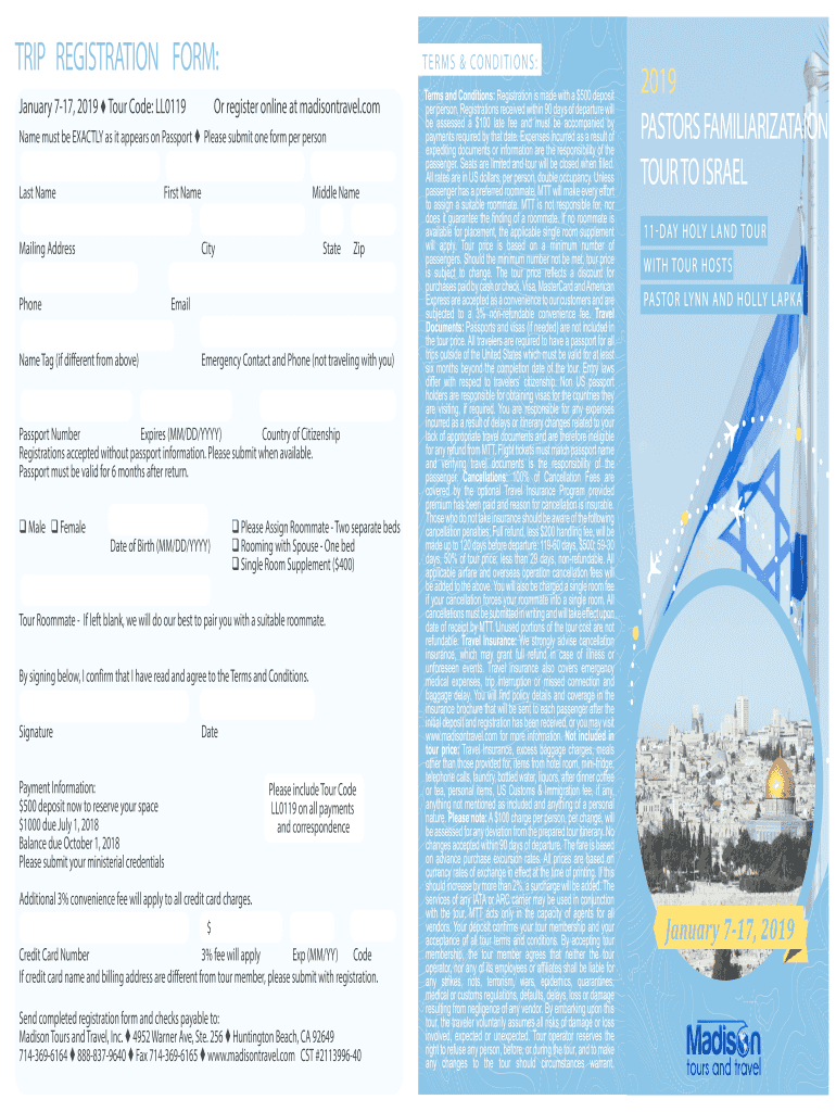TRIP REGISTRATION FORM: January 717, 2019 t Tour Code: LL0119TERMS & CONDITIONS:Or register online at madisontravel. Compare must be EXACTLY as it appears on Passport t Please submit one form per