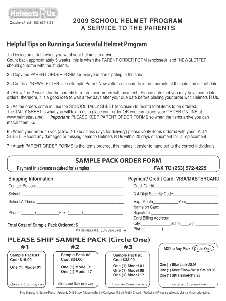 This parent order form is intended for parents of students participating in the helmet program. Schools involved in this initiative provide parents with the order form to ensure that all students have access to safety helmets. The program benefits students by promoting a culture of safety within the educational environment.