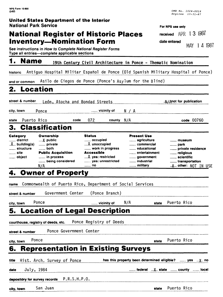NFS Form 10900 (382)OH No.10240018Expires103187United States Department of the International Park ServiceNow NFS use onlyNational Register of Historic Places Inventory Nomination Form received APR