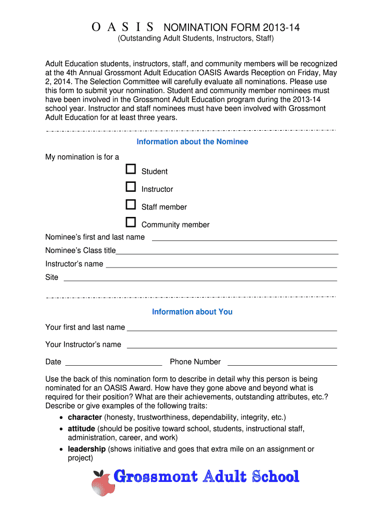 OASIS NOMINATION FORM 201314
