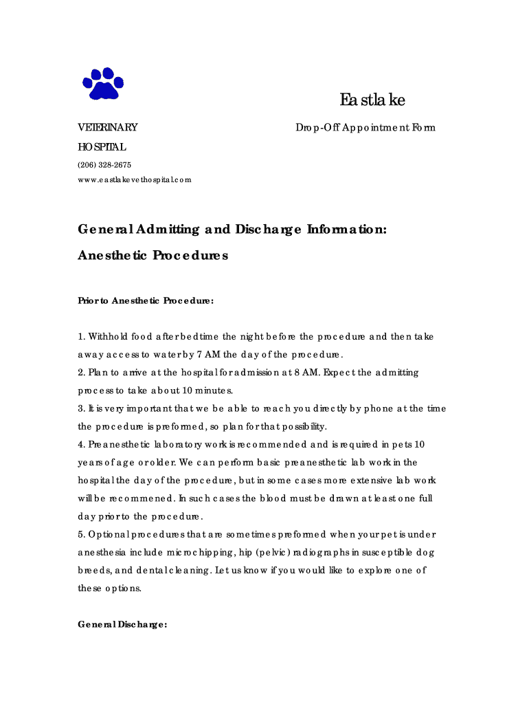 www.eastlakevethospital.comGeneral Admitting and Discharge Information: