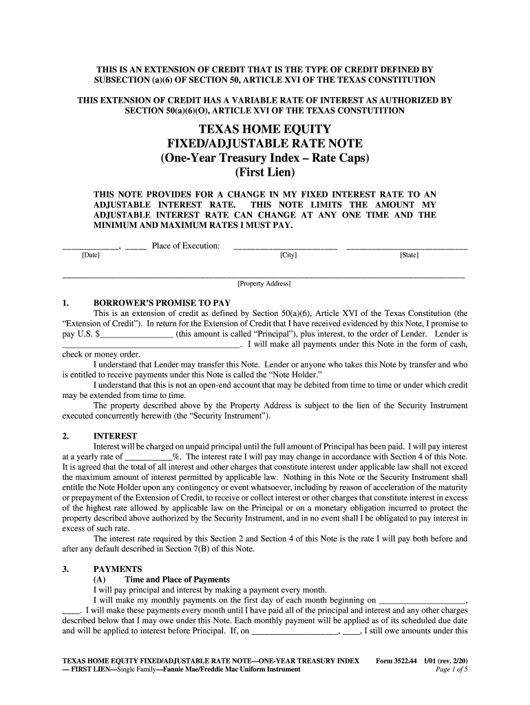 THIS IS AN EXTENSION OF CREDIT THAT IS THE TYPE OF CREDIT DEFINED BY SUBSECTION (a)(6) OF SECTION 50, ARTICLE XVI OF THE TEXAS CONSTITUTION THIS EXTENSION OF CREDIT HAS A VARIABLE RATE OF INTEREST