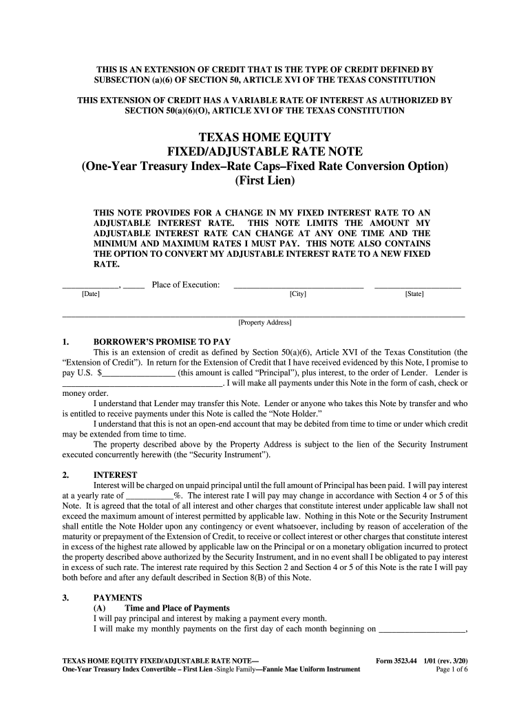 Get the free Texas Home Equity Fixed/Adjustable Rate Note - 1 Year Treasury Index - First Lien (F...