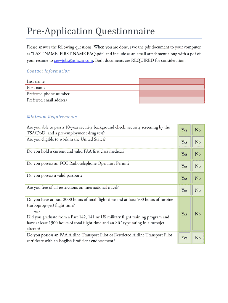 Get the free Pre-Application Questionnaire