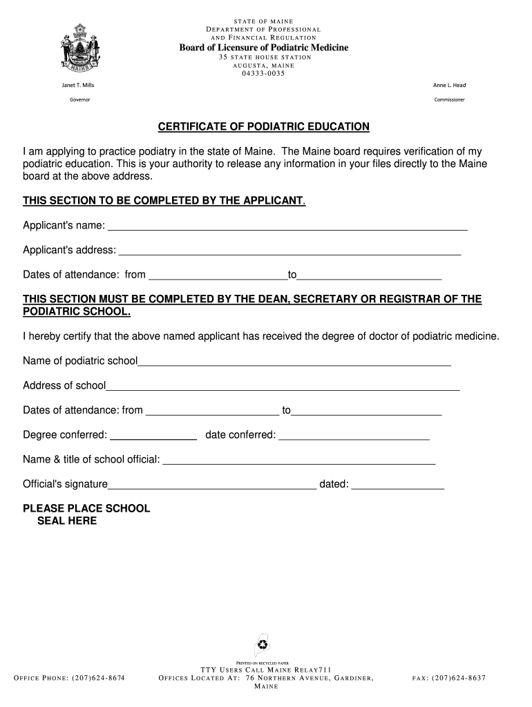 How to fill out certificate of podiatric education