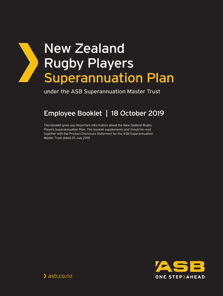 New Zealand Rugby Players Superannuation Plan under the ASB Superannuation Master TrustEmployee Booklet 18 October 2019 This booklet gives you important information about the New Zealand Rugby Players