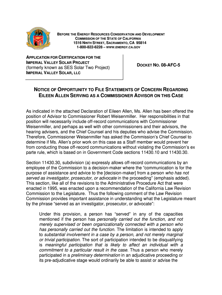 Get the free Notice of Opportunity to file statements of concern Regarding Eileen ...