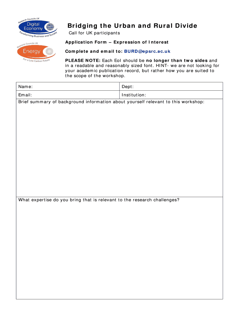 Get the free Bridging the Urban and Rural Divide - EoI form - epsrc