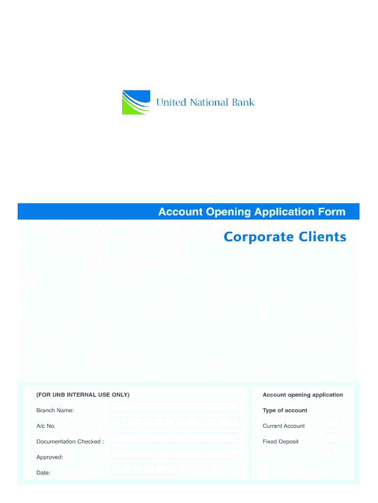 The Corporate Account Opening Application Form is a business document used by companies to apply for a new corporate bank account with United National Bank Limited.