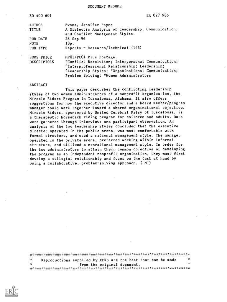 Get the free A Dialectic Analysis of Leadership, Communication, and Conflict ...