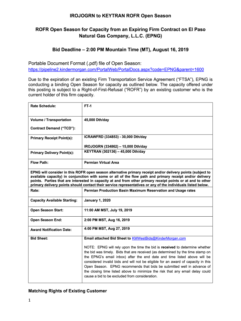 Get the free Buckhorn to Keytran Open Season ROFR Open Season for ...