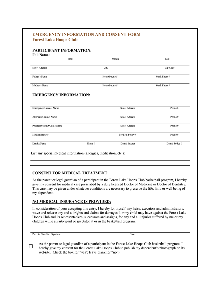 Get the free Emergency Info and Consent.doc