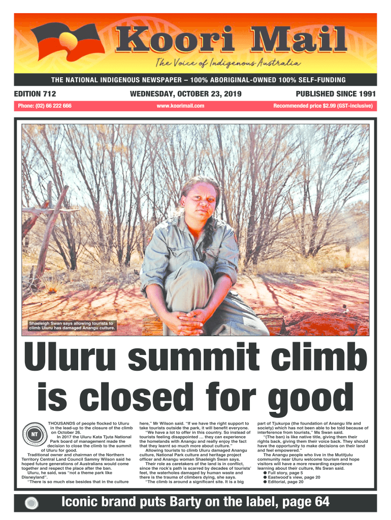THE NATIONAL INDIGENOUS NEWSPAPER 100% ABORIGINALOWNED 100% SELFFUNDINGEDITION 712WEDNESDAY, OCTOBER 23, 2019Phone: (02) 66 222 666www. Quirinal.published SINCE 1991 Recommended price $2.99 (Inclusive)Raleigh