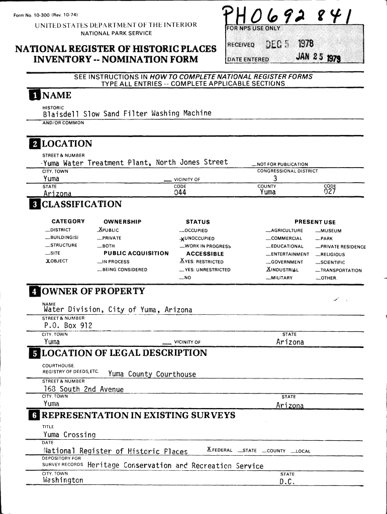 Form No. 10300 (Rev. 1074)UNITED STATES DEPARTMENT OF THE INTERIOR NATIONAL PARK SERVICENATIONAL REGISTER OF HISTORIC PLACES INVENTORY NOMINATION FORM SEE INSTRUCTIONS IN HOW TO COMPLETE NATIONAL