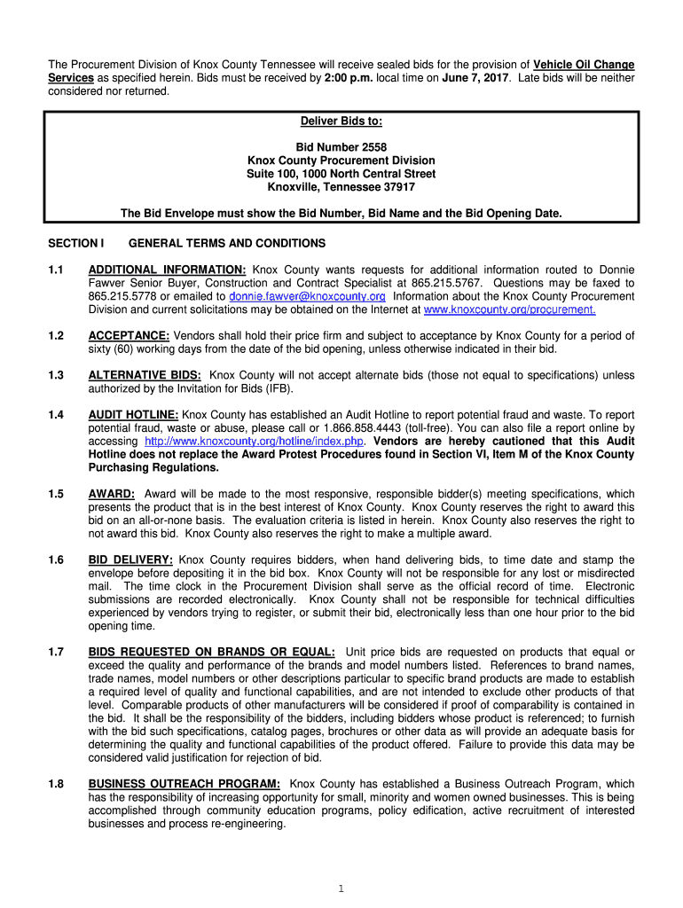 Get the free The Procurement Division of Knox County Tennessee will receive sealed bids for the p...