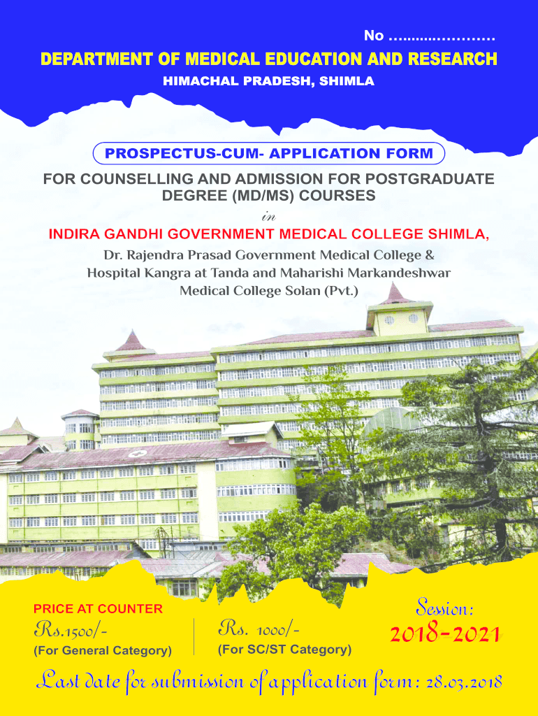 No ........DEPARTMENT OF MEDICAL EDUCATION AND RESEARCH HIMACHAL PRADESH, SHIMLAPROSPECTUSCUM APPLICATION FORMER COUNSELLING AND ADMISSION FOR POSTGRADUATE DEGREE (MD/MS) COURSES in INDIRA GANDHI