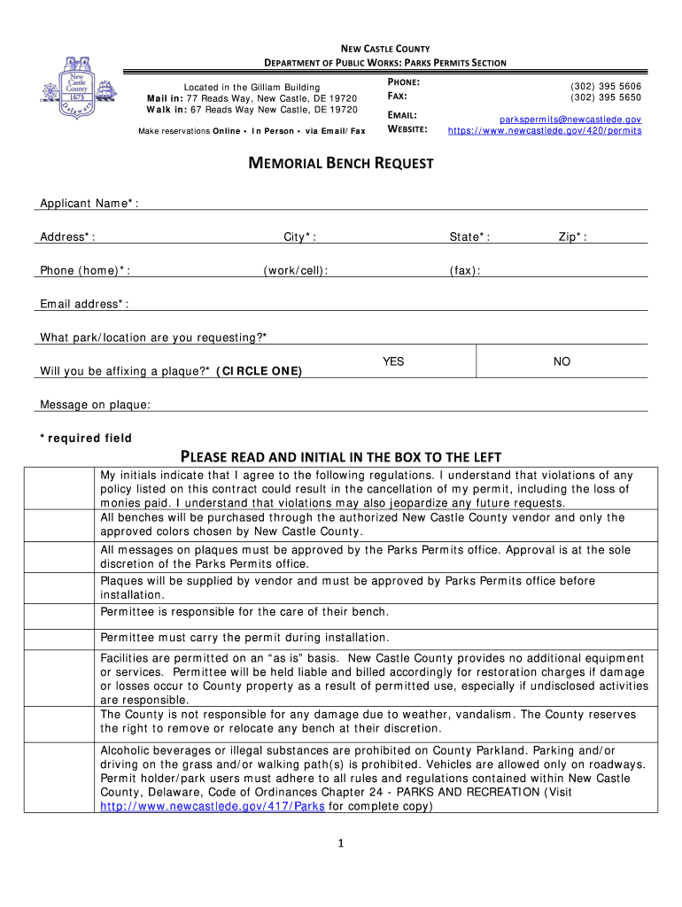How to fill out 2020 memorial bench application