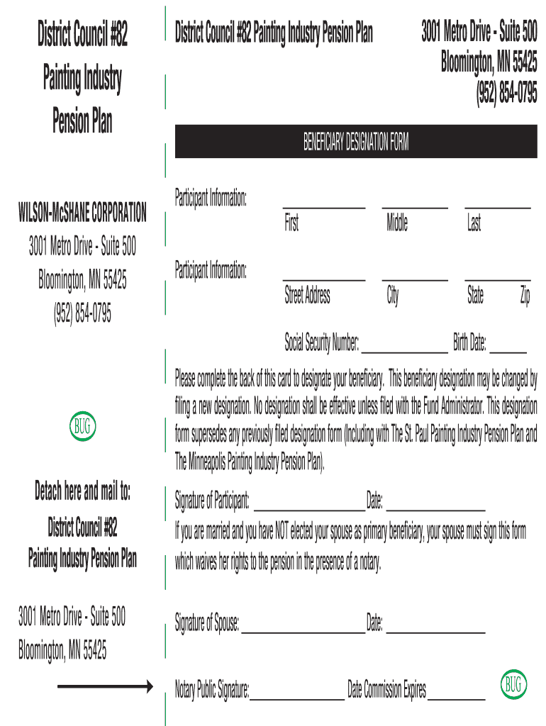 District Council #82 Painting Industry Pension Plan WILSONMcSHANE CORPORATION 3001 Metro Drive Suite 500 Bloomington, MN 55425 (952) 8540795BUGDetach here and mail to: District Council #82 Painting