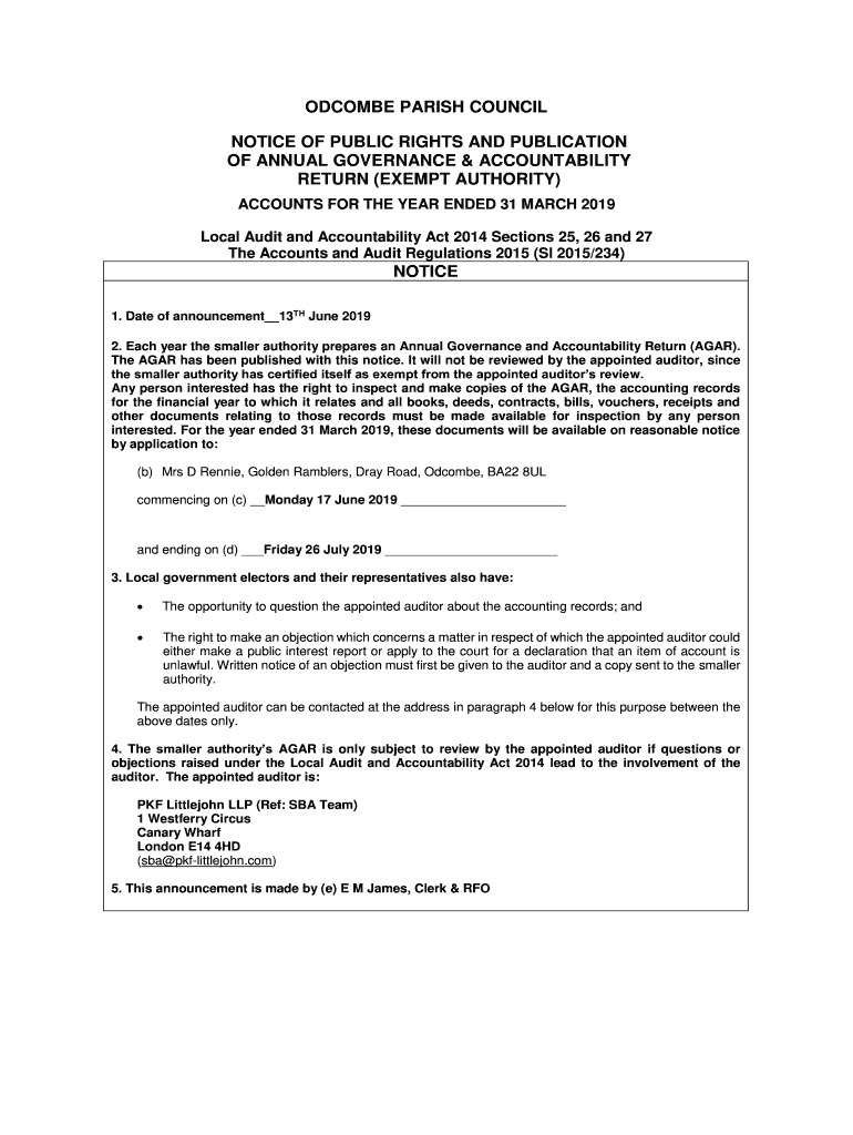 Get the free ODCOMBE PARISH COUNCIL NOTICE OF PUBLIC RIGHTS AND ...