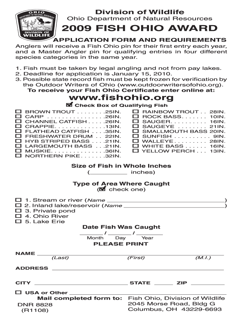 Division of Wildlife Ohio Department of Natural Resources2009 FISH OHIO AWARD
