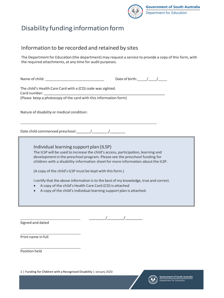 The form can be filled out by providing details of the funding received for disabilities and submitting it to the relevant authorities.