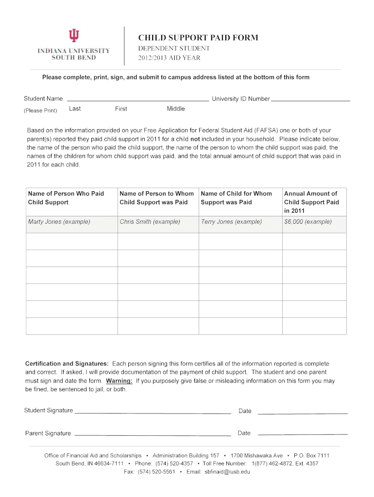 Get the free Child Support Paid Form