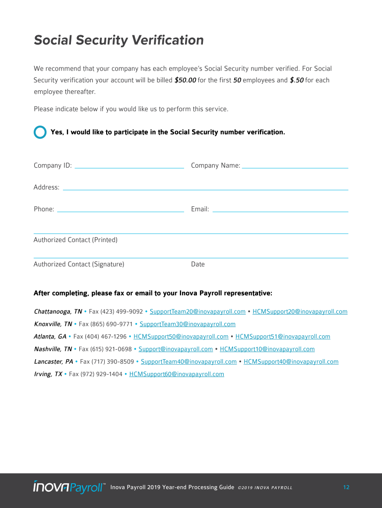 Social Security Verification We recommend that your company has each employee's Social Security number verified. For Social Security verification your account will be billed $50.00 for the first 50