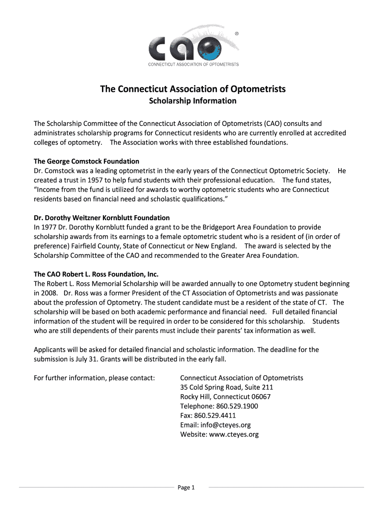 The Scholarship Committee of the Connecticut Association of Optometrists (CAN) consults and