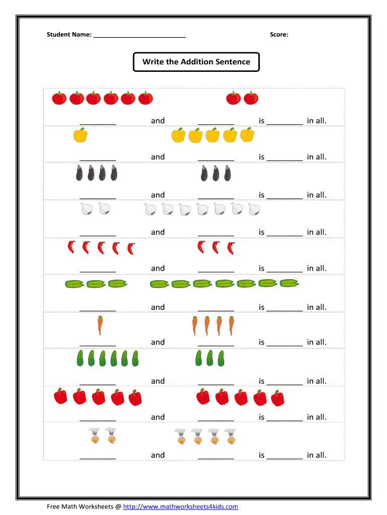 Student Name: Score:Write the Addition Sentence and is in all. And is in all. And is in all. And is in all. And is in all. And is in all. And is in all. And is in all. And is in all. And is in all.