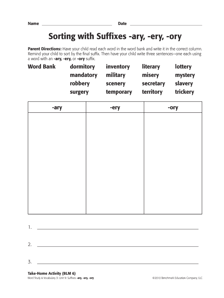 Fill out your sorting with suffixes -ary online with pdfFiller!