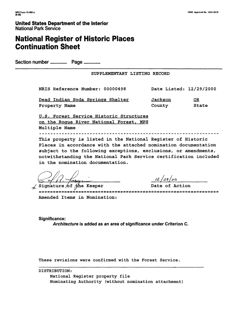 NPS Form 10900aOMB Approval No. 10240018United States Department of the Interior National Park ServiceNational Register of Historic Places Continuation Sheet Section number Page SUPPLEMENTARY LISTING