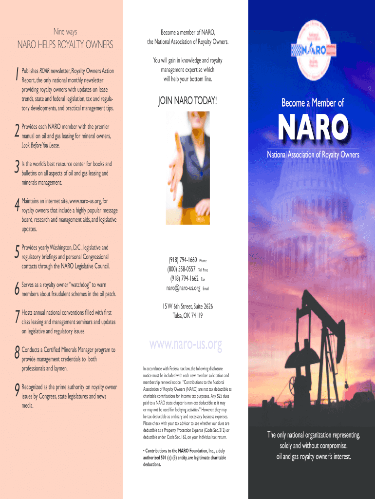 NARO Helps royalty owners is designed for individuals who own royalty interests in oil, gas, or mineral rights.