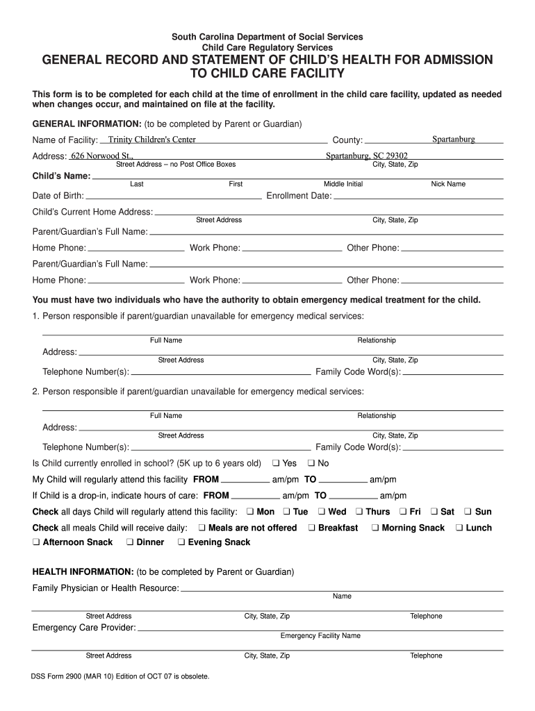 DSS Form 2900 is typically required by individuals who are applying for assistance programs provided by the Department of Social Services (DSS). This form helps determine eligibility for various programs, such as financial assistance, food stamps, or medical benefits. It is necessary for individuals who need government support to fill out this form accurately and honestly to ensure they receive the assistance they qualify for.