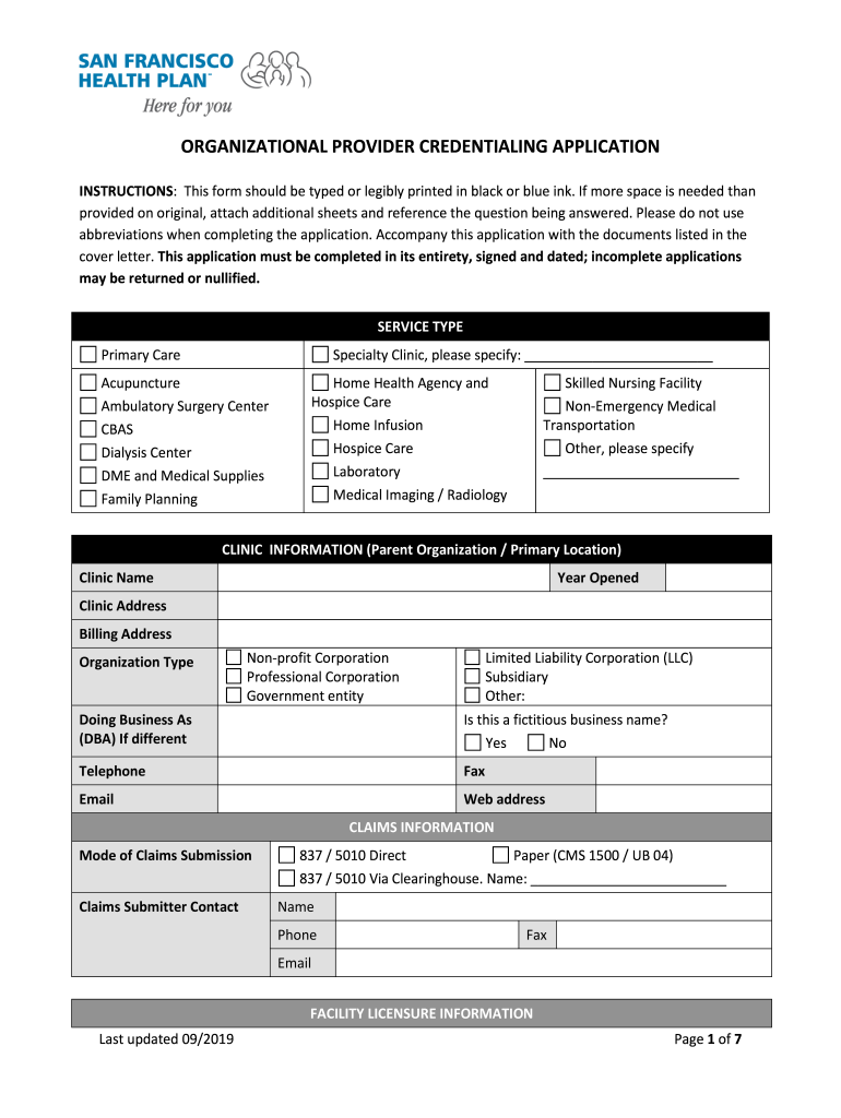 ORGANIZATIONAL PROVIDER CREDENTIALING APPLICATION