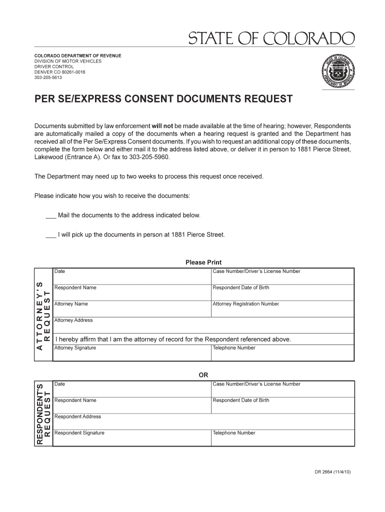 Submission Process for the Colorado Per Se/Express Consent Documents Request