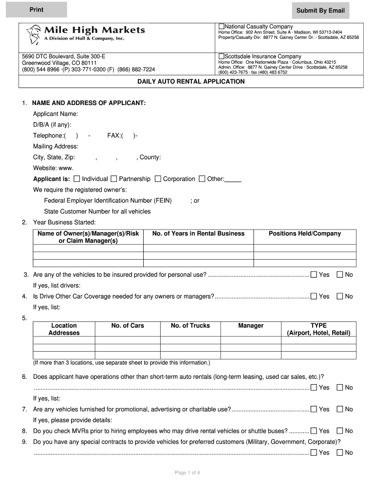 Industries that typically utilize this application often range from small local enterprises to larger organizations. Businesses of all sizes seeking to secure vehicle rental insurance should consider employing the daily auto rental application to enhance their operations.