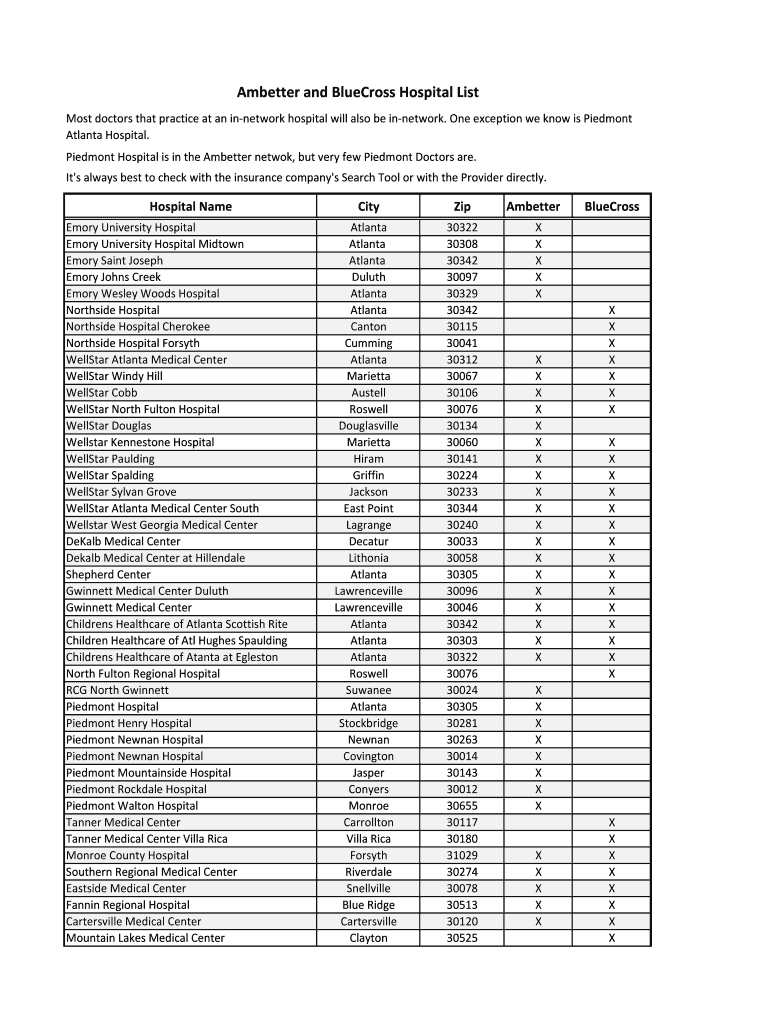 AmbetterandBlueCrossHospitalList