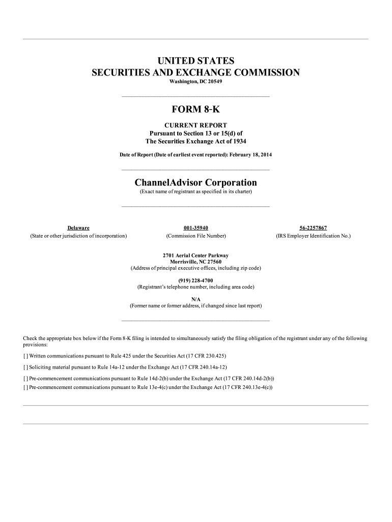 Get the free Date of Report (Date of earliest event reported): February 18, 2014