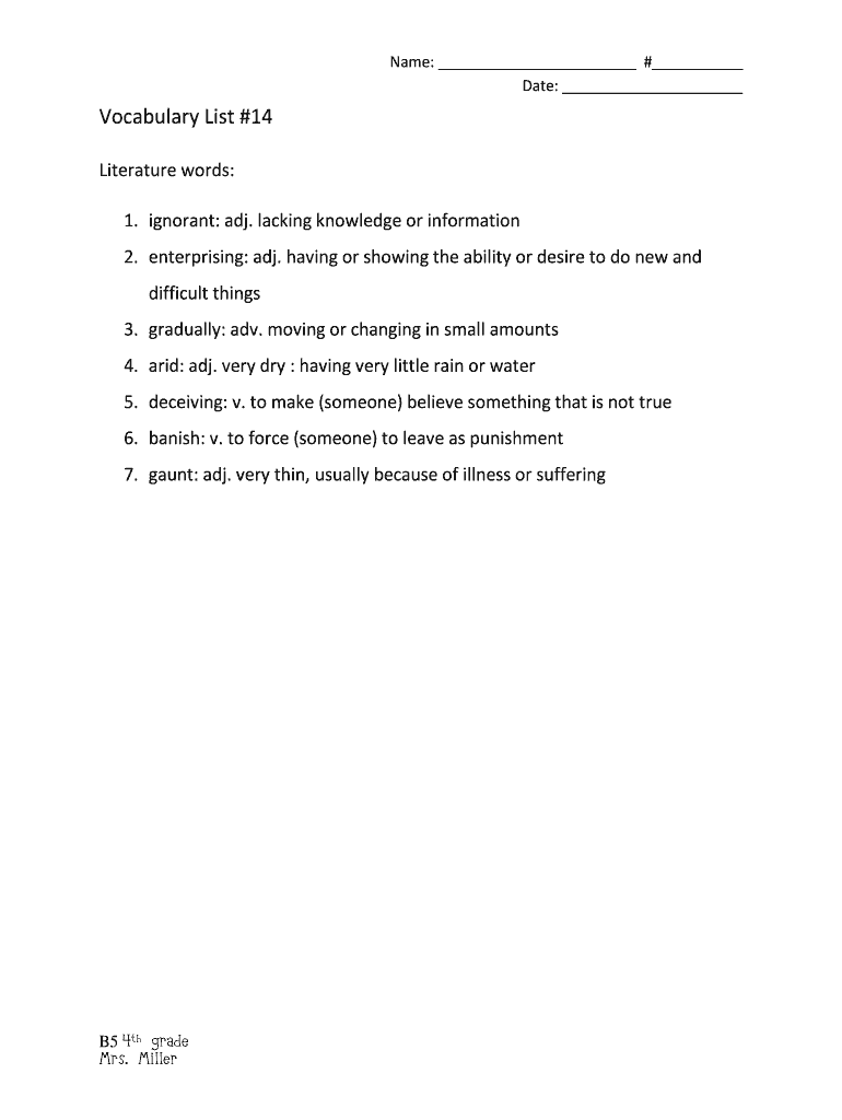 Get the free Name: # Date: Vocabulary List #14 - Lake Forest Elementary School