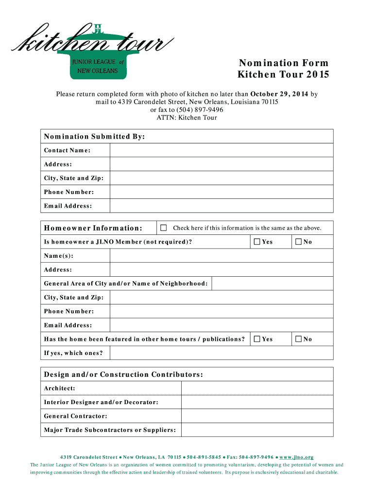 Get the free Nomination Form Kitchen Tour 2015 - The Junior League of New ... - jlno