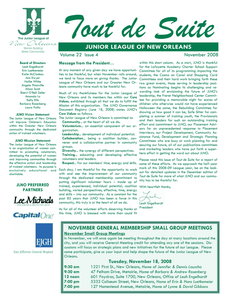 Get the free November 2008 TDS - The Junior League of New Orleans - jlno