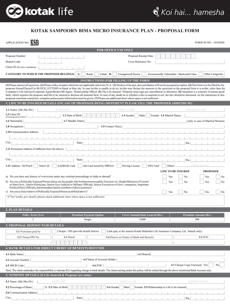 Kotak Sampoorn Bima Micro is not the form you're looking for?Search for another form here.