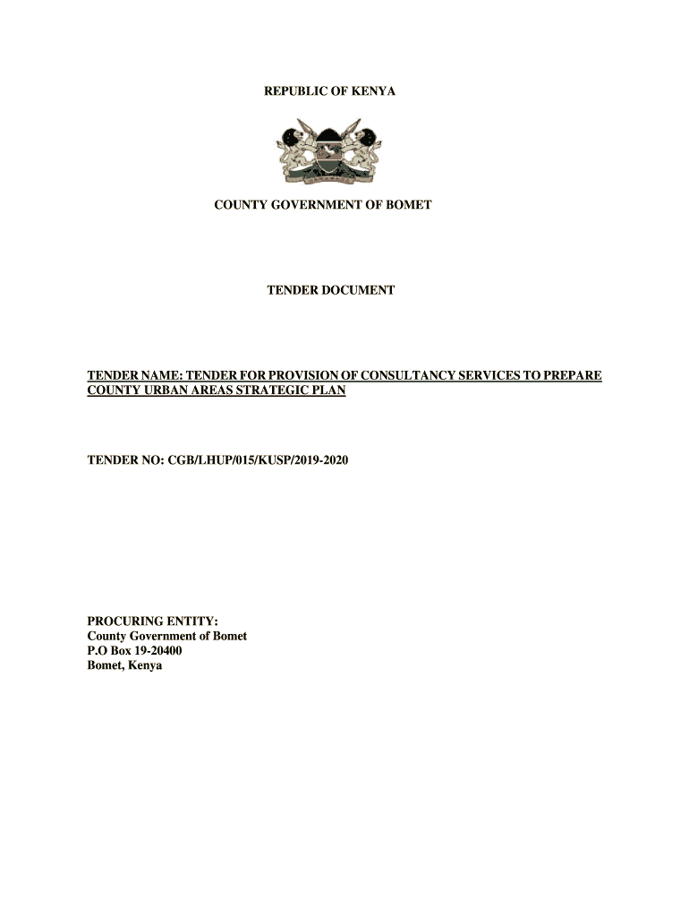 REPUBLIC OF KENYACOUNTY GOVERNMENT OF HOMESTEADER DOCUMENTTENDER NAME: TENDER FOR PROVISION OF CONSULTANCY SERVICES TO PREPARE