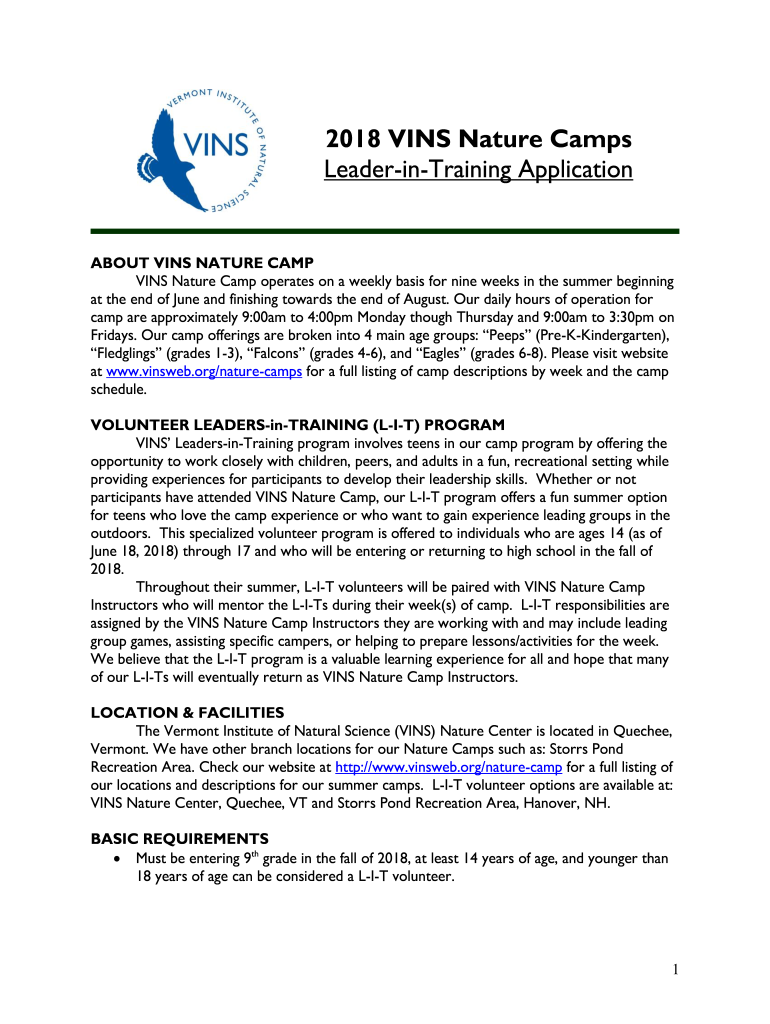 Get the free Nature Camp - Vermont Institute of Natural Science - Vins