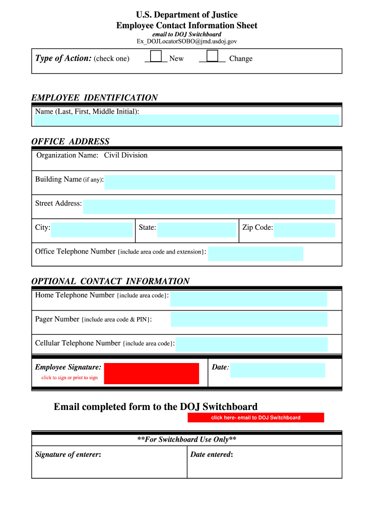 Ex_DOJLocatorSOBO@jmd.usdoj.govType of Action: (check one)NewChangeEMPLOYEE IDENTIFICATION