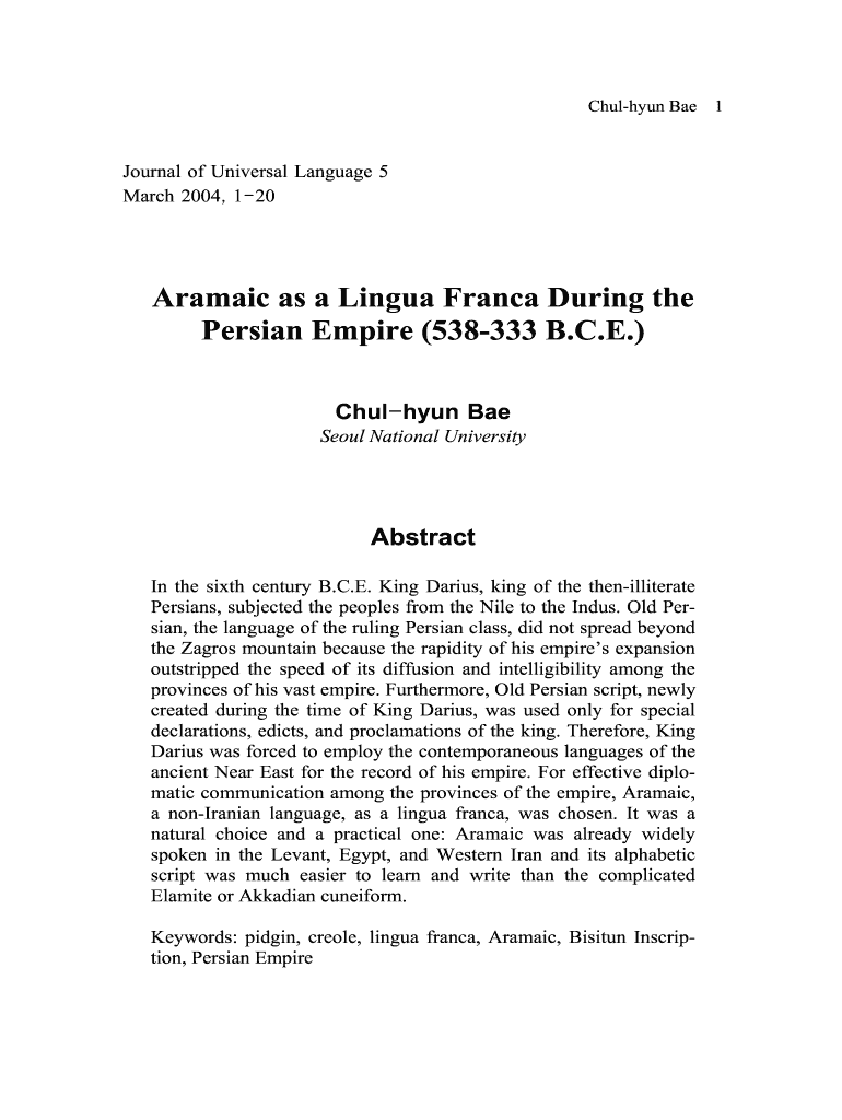 Get the free Aramaic as a Lingua Franca During the Persian Empire - Journal of ...