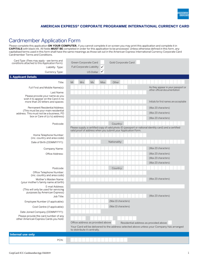 CLEARPRINTAMERICAN EXPRESS CORPORATE Program INTERNATIONAL CURRENCY CARDCardmember Application Form